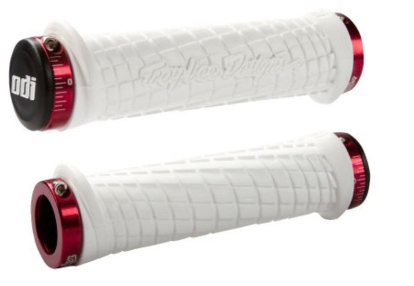 The ODI Troy Lee Designs Signature Series Lock-On Grip Set was designed to be the best of the best. What else would we get by combining the design power of Troy Lee and ODI? What we got was a beautiful grip that functions amazingly. Grooved channels prevent water and mud build up and custom flange designs provide more usable grip space. This grip is a sure winner.
